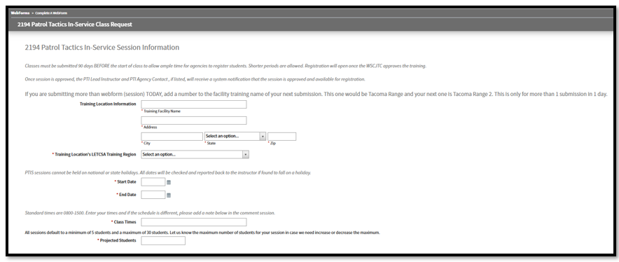 Click on the webform 2194 Patrol Tactics In-Service Class Request.