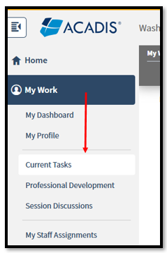 - Go to My Work > Current Tasks > and complete “Applicant Completes Instructor Development 1 Waiver Request Webform” by clicking the “Start Webform” on the far right.